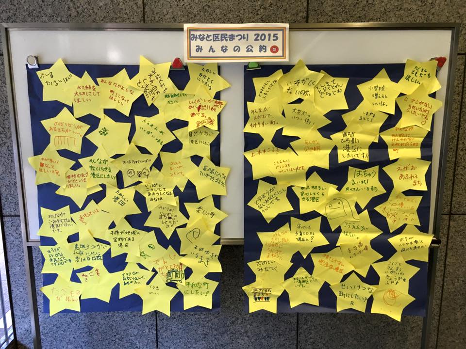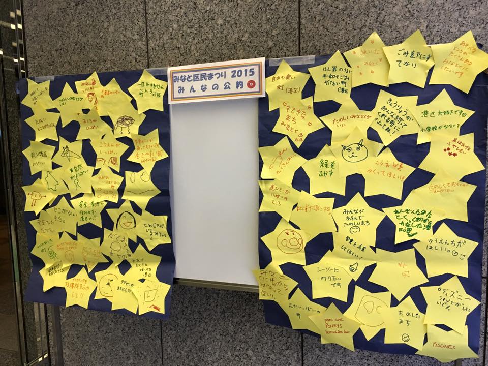 画像は先日のみなと区民まつりの区議会ブースで行った子ども議員の皆さんの公約を港区議会の玄関に掲示させて頂きました。沢山の公約を掲げて頂き、嬉しいですね!